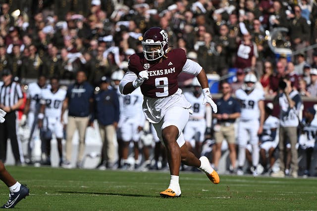 Texas A&M Aggies DE Cashius Howell rushes the QB during game featuring the Samford Bulldogs and the Texas A&M Aggies on November 22, 2025 at Kyle Field in College Station, TX. (Photo by John Rivera/Icon Sportswire via Getty Images)