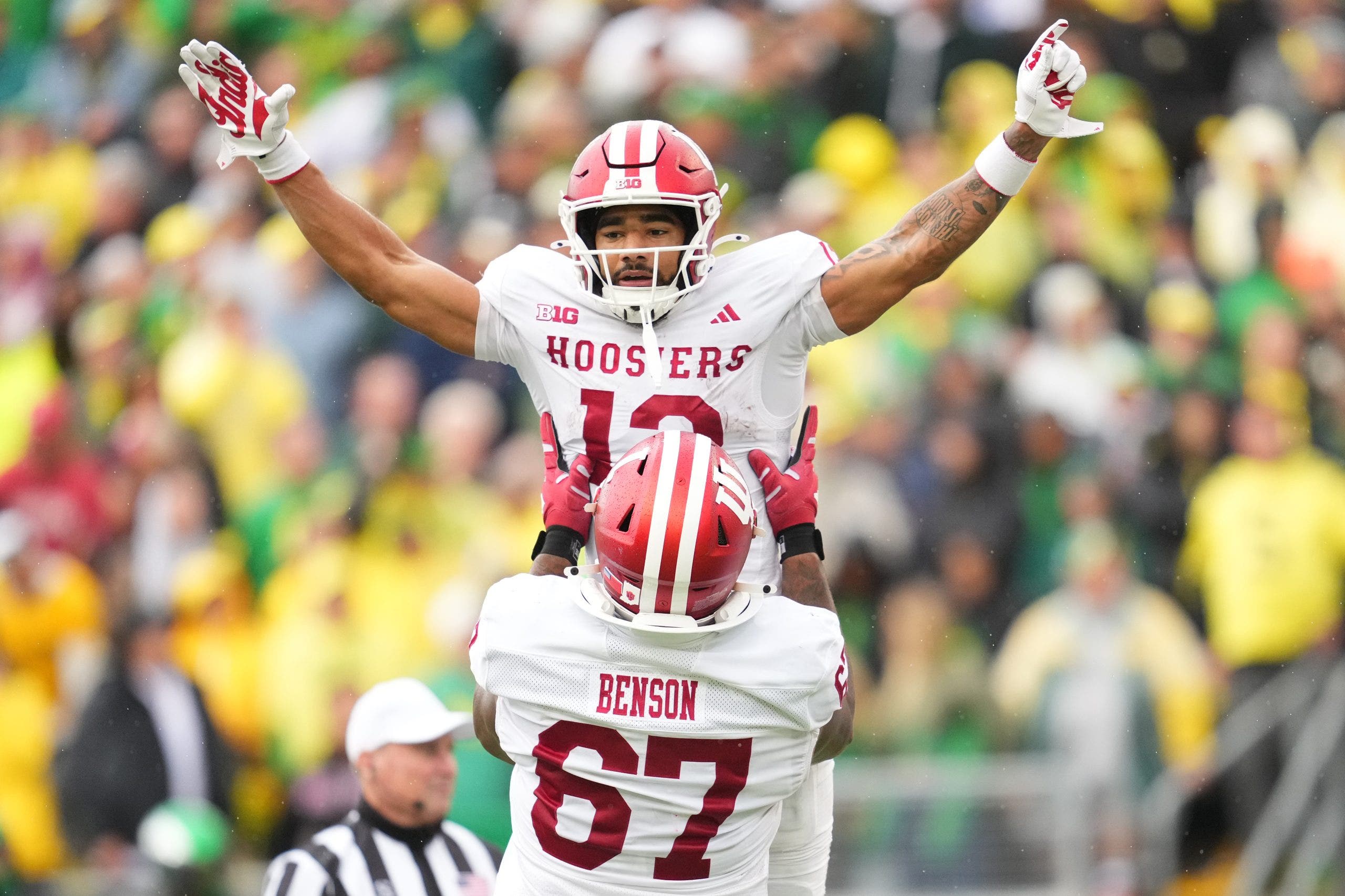 In a macro sense, what Sarratt has done over the course of this season is entrench himself as one of the best receivers in the country — even if the college football universe is reticent, or perhaps unwilling, to recognize it given the Hoosiers’ prolonged dalliance with futility before Cignetti arrived. Indiana’s victory over the Ducks marked the second consecutive game-winning touchdown for Sarratt, who turned a short slant against Iowa’s all-out blitz into a 49-yard score with 1:28 remaining in his prior outing, stunning the upset-minded Hawkeyes at Kinnick Stadium.