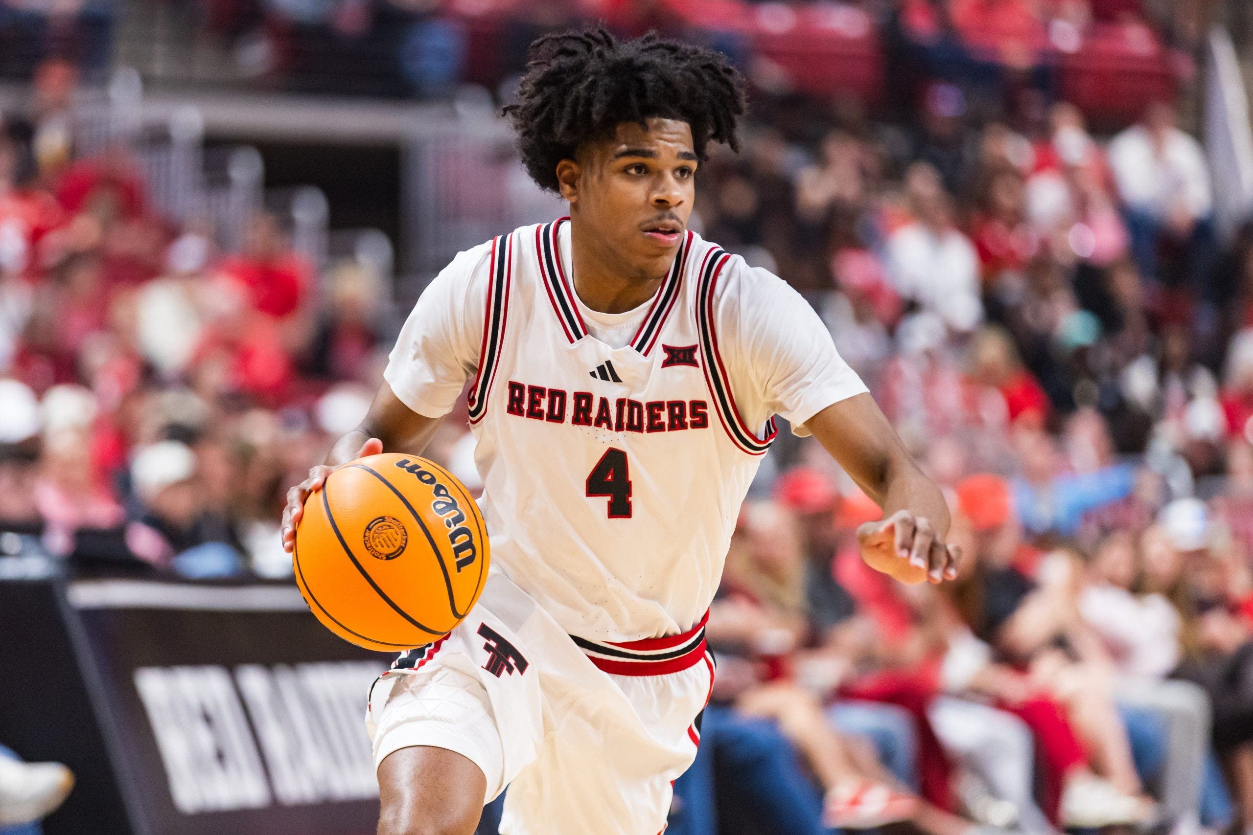 Christian Anderson #4 of the Texas Tech Red Raiders handles the ball during the first half of a game against TCU. (Photo by John E. Moore III/Getty Images)