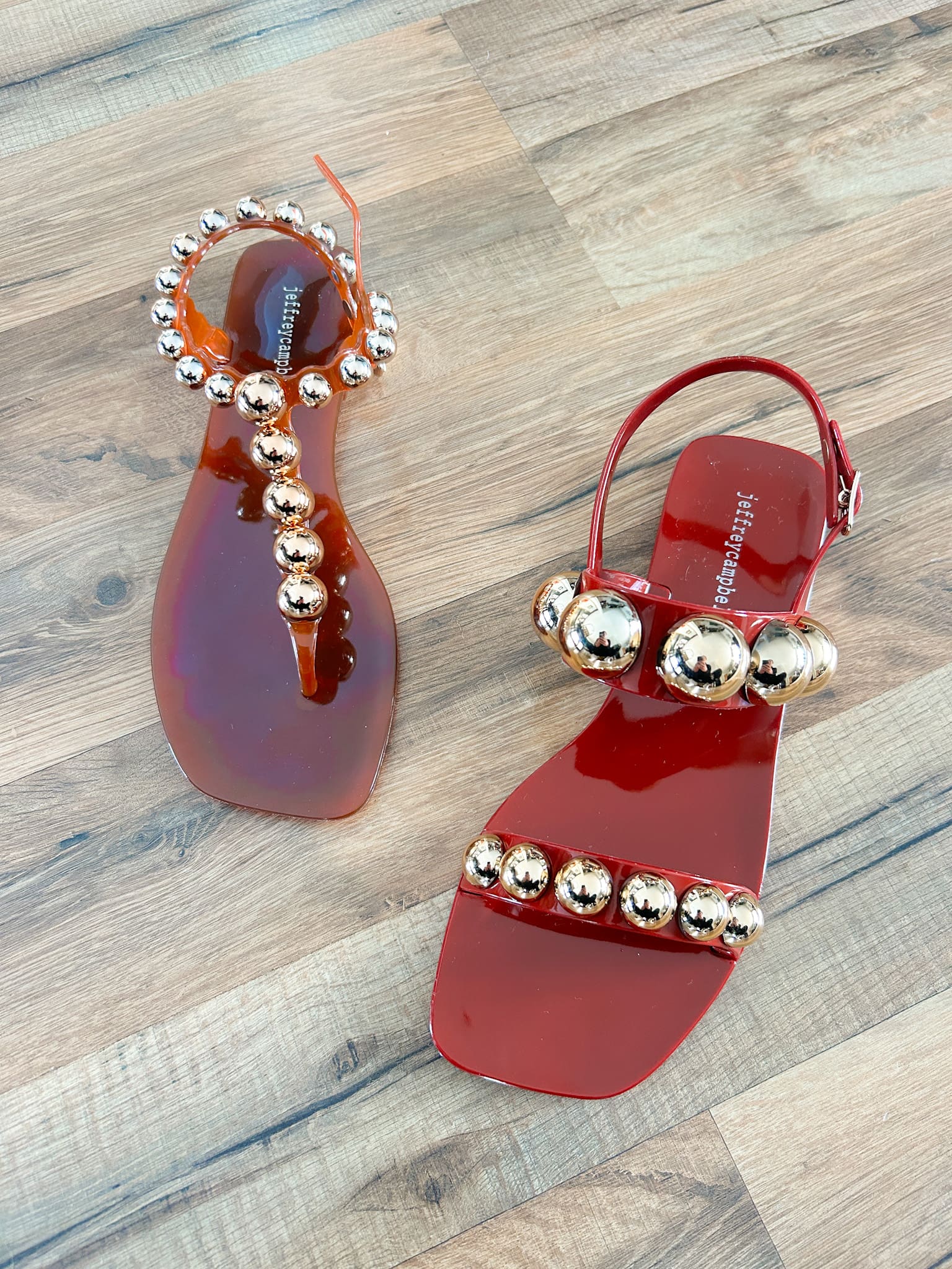 Jeffrey Campbell Plated Embellished Sandals [size up] // Jeffrey Campbell Gum Drop Jelly Sandals [size up]