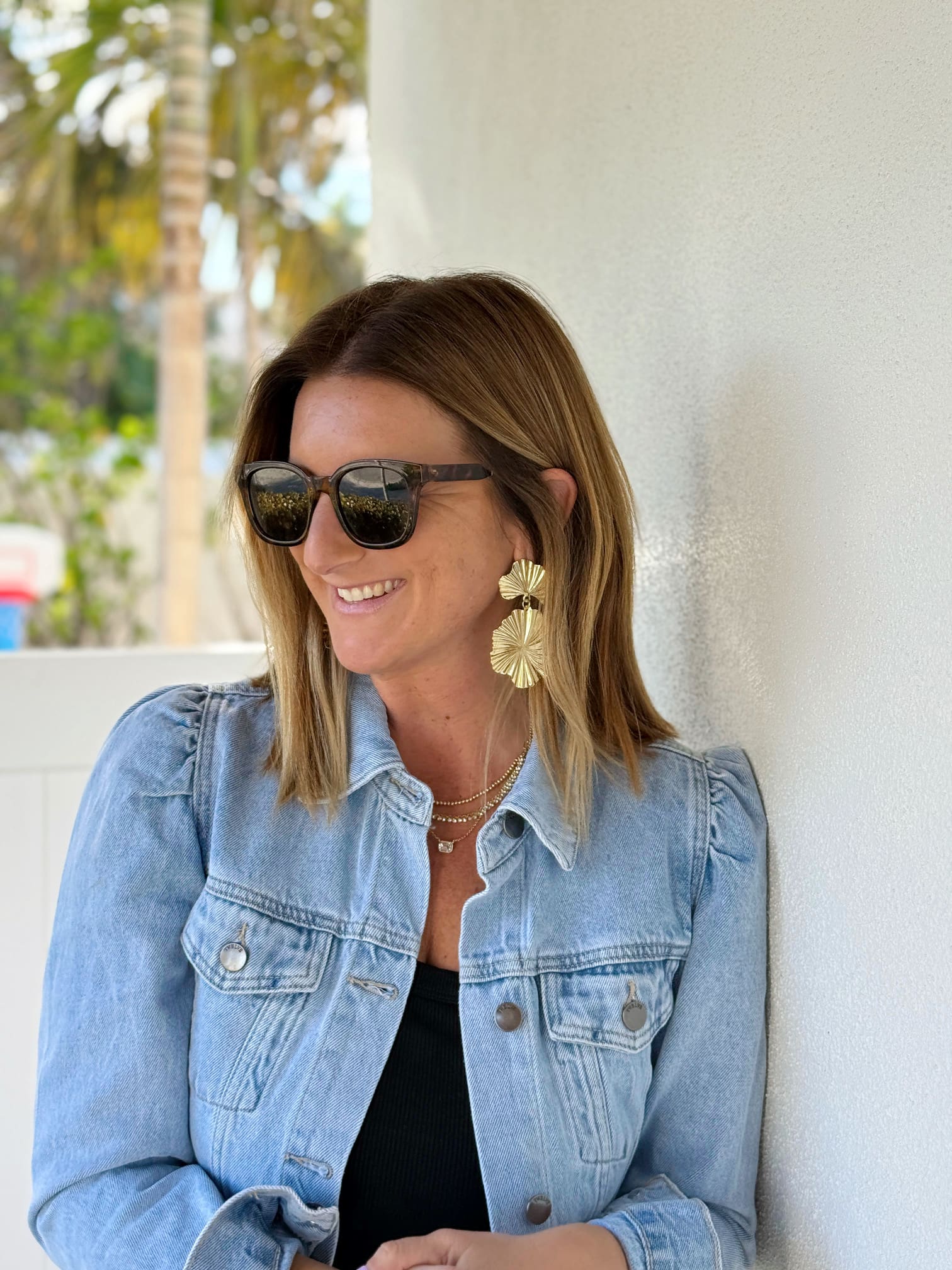 Sunglasses // Earrings // Layered Necklace // Denim Jacket [true to size, wearing in S]