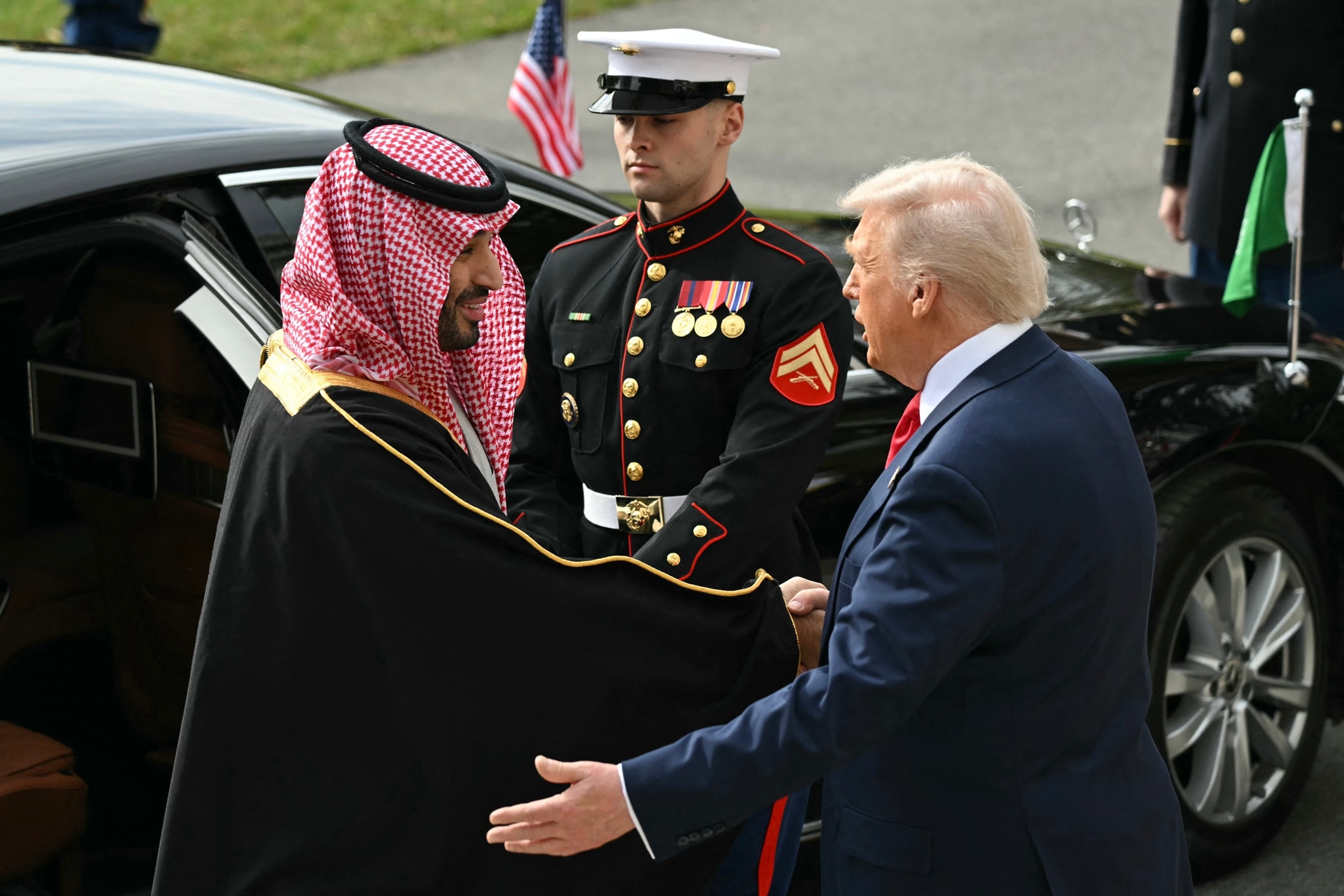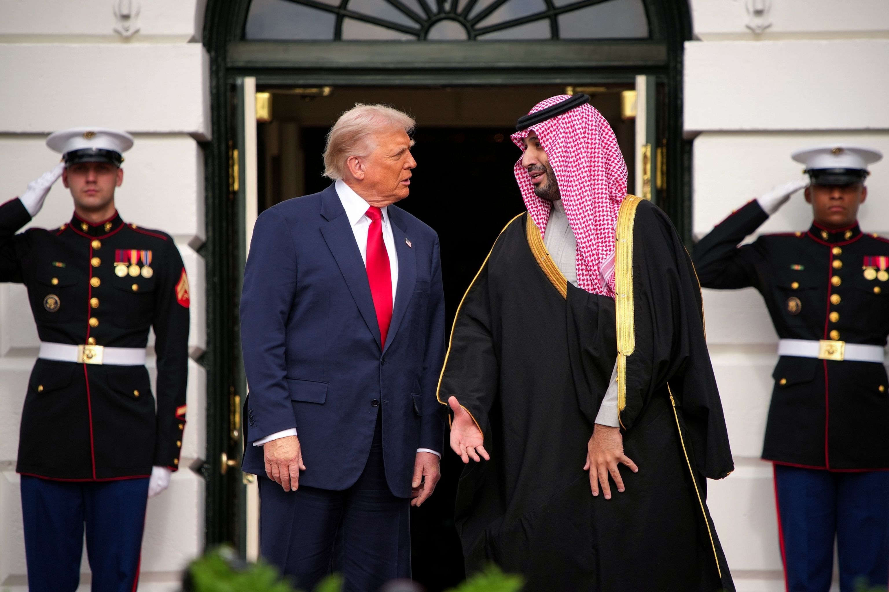 Shortly earlier than, Trump welcomed him to the White Home with a lavish arrival ceremony, full with Saudi flags flying subsequent to American flags, a crimson carpet, a contingent of horses and a navy coloration guard.