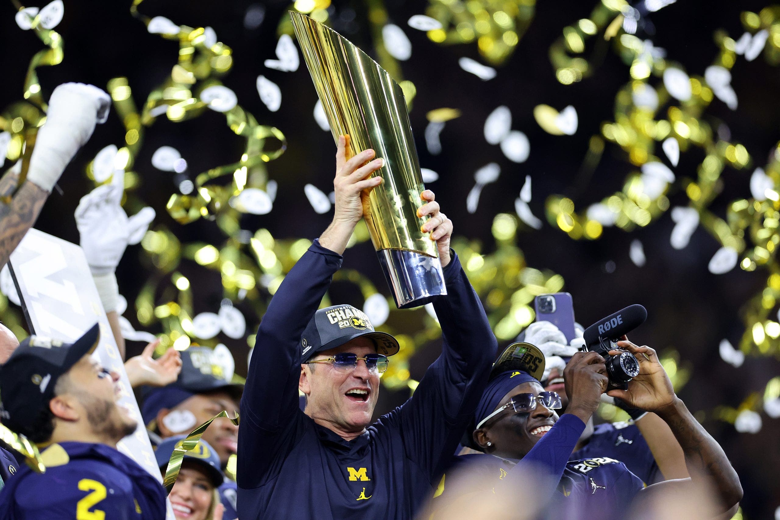 Jim Harbaugh and Michigan won the national championship in 2023. (Photo by Stacy Revere/Getty Images)
