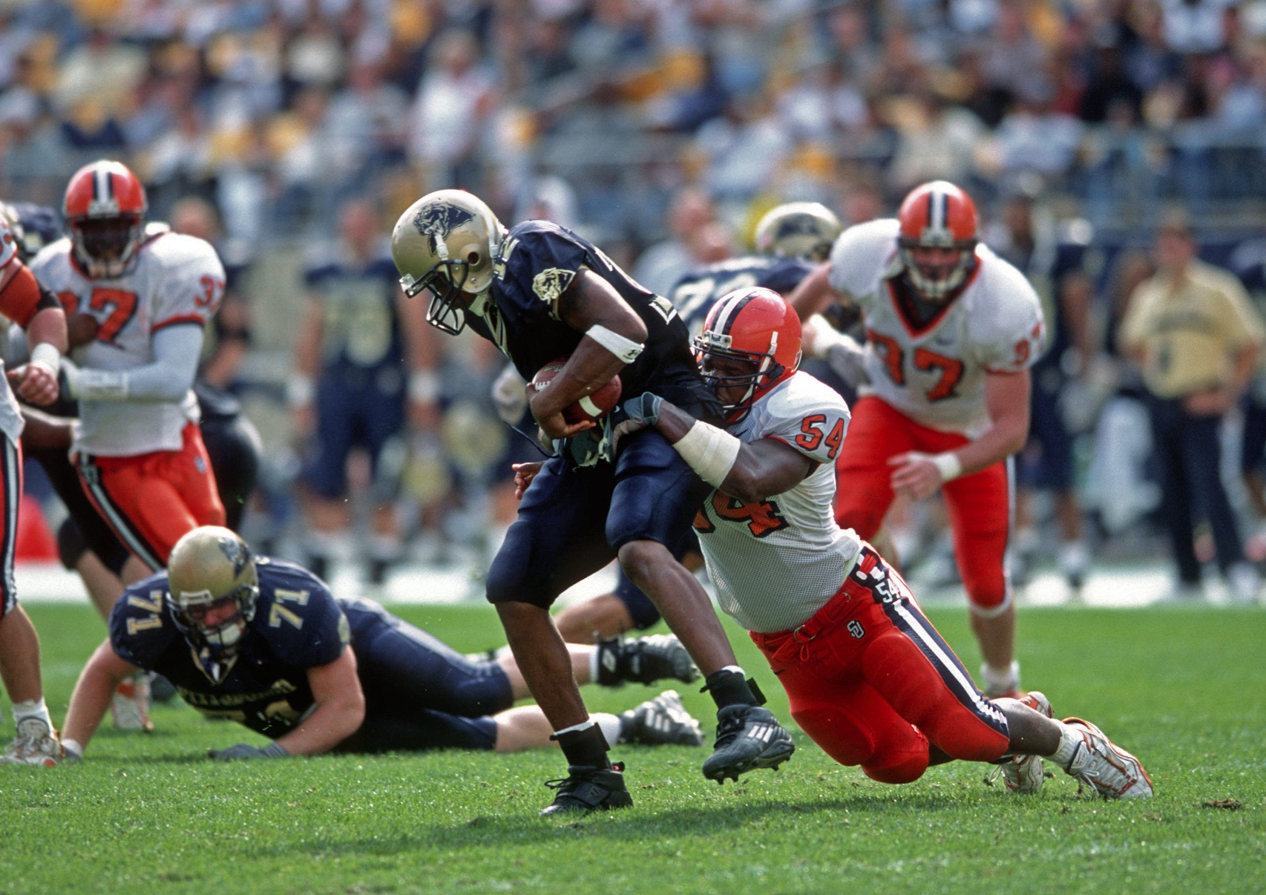 Before he became a Pro Football Hall of Fame pass rusher, Freeney was a Hall of Fame pass rusher at the college level. In just two seasons as a starter at Syracuse, Freeney recorded 34.0 total sacks. That included setting a program record of 17.5 sacks in his senior season in 2001.